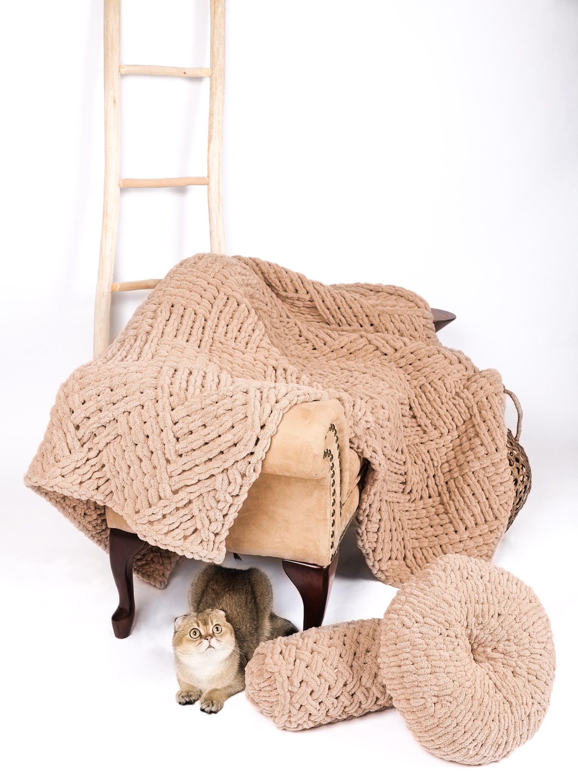 The Biscuit Diamond is a cozy, soft blanket, knitted and weaved by hand to ensure lasting durability. Its biscuit color adds a warm touch to any room, while its handmade construction guarantees comfort for a lifetime. Stay warm and stylish with the Biscuit Diamond.