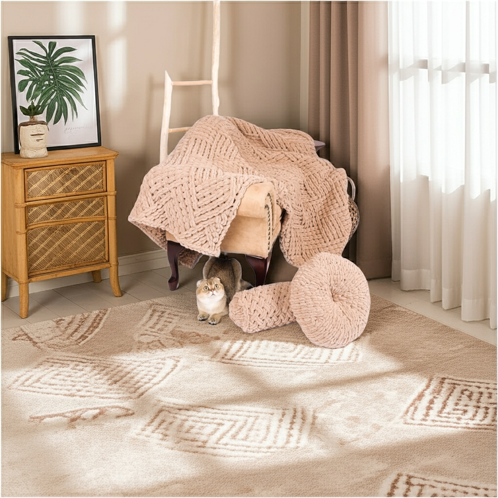 The Biscuit Basketweave is a cozy, soft blanket, knitted and weaved by hand to ensure lasting durability. Its biscuit color adds a warm touch to any room, while its handmade construction guarantees comfort for a lifetime. Stay warm and stylish with the Biscuit Basketweave.
