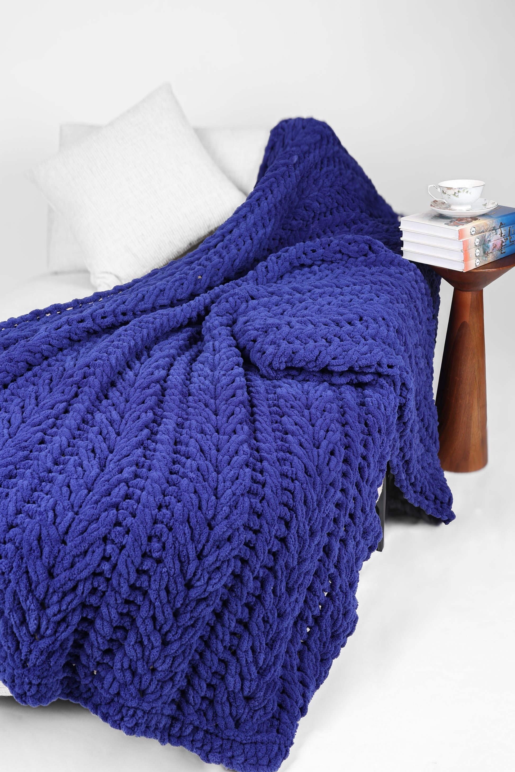 Introducing Braid Night - the perfect cozy companion for your relaxing evenings. Handmade with care, this soft blanket is crafted with a beautiful dark blue color. Its durable material ensures a lasting lifetime of comfort. Simply follow the care instructions to keep it looking and feeling like new. Surround yourself in luxury with Braid Night.