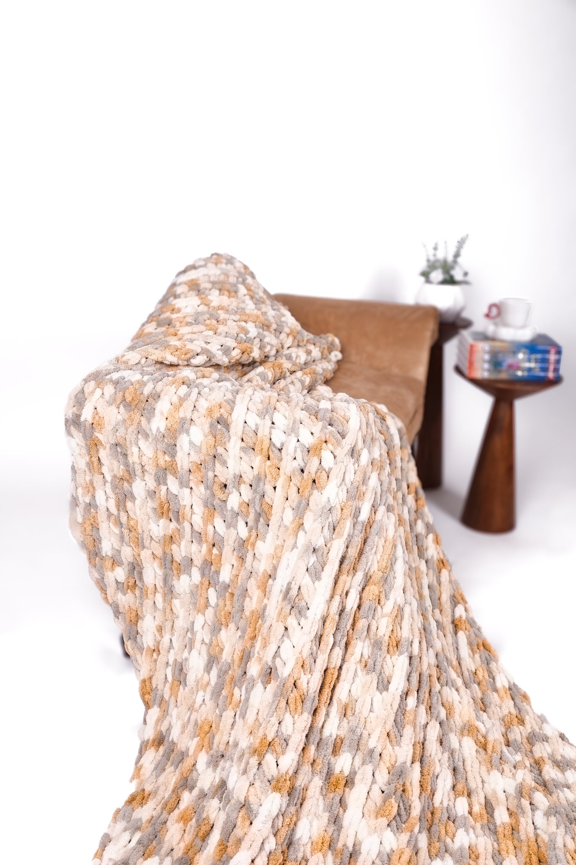Introducing Autumn, the perfect addition to your home decor. Handmade with cozy, soft material, this blanket boasts stunning colors that will bring the beauty of fall into your home. With proper care, it will last you a lifetime of coziness. Welcome the season with Autumn.